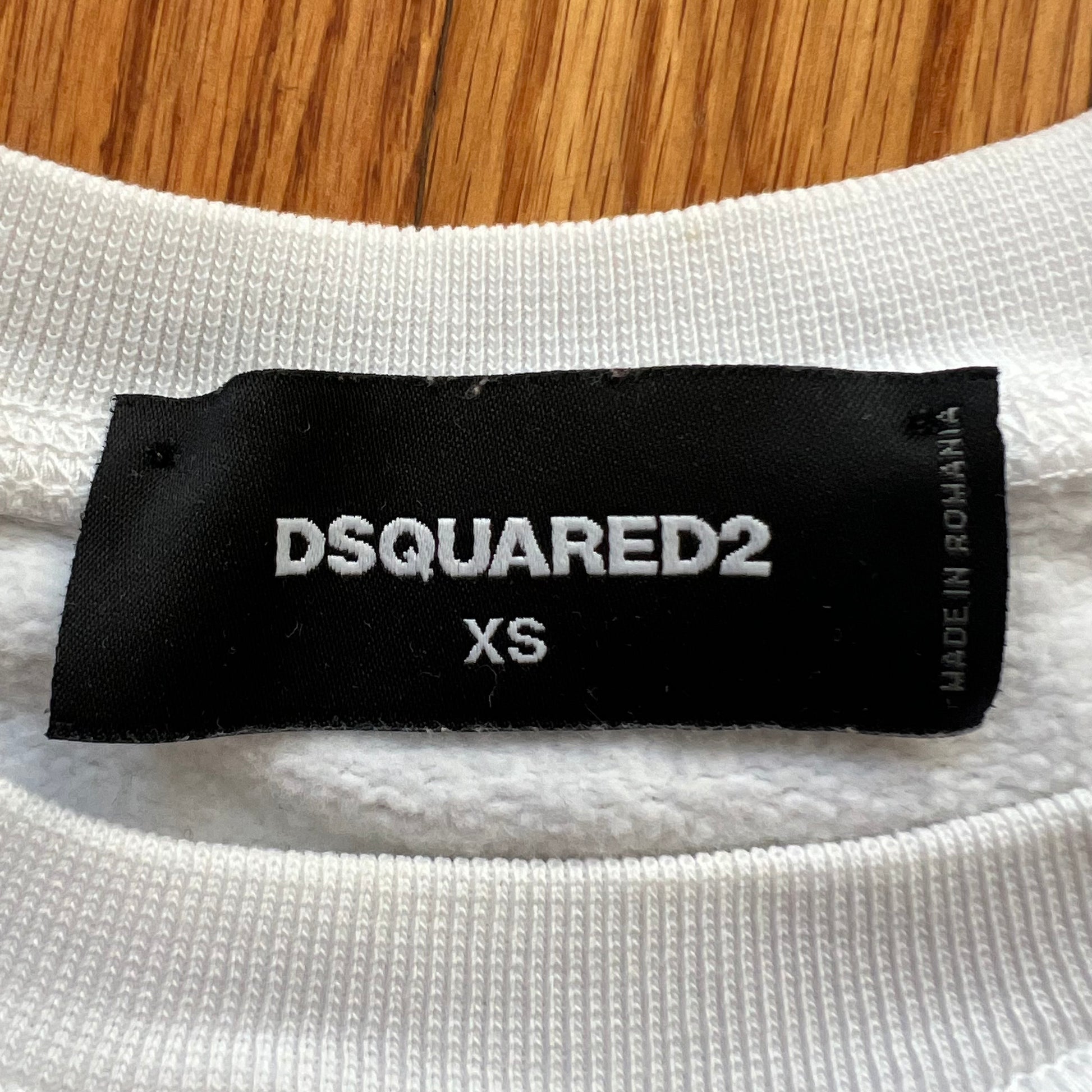Vintage white and black cotton Dsquared2 printed crewneck. some discolorations near the lower back. Not noticeable.